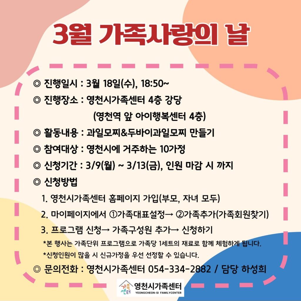 ◎ Inquiries: Yeongcheon-si Family Center ☎️ 054-334-2882 / Person in Charge: Ha Seong-hee 📞👩💼