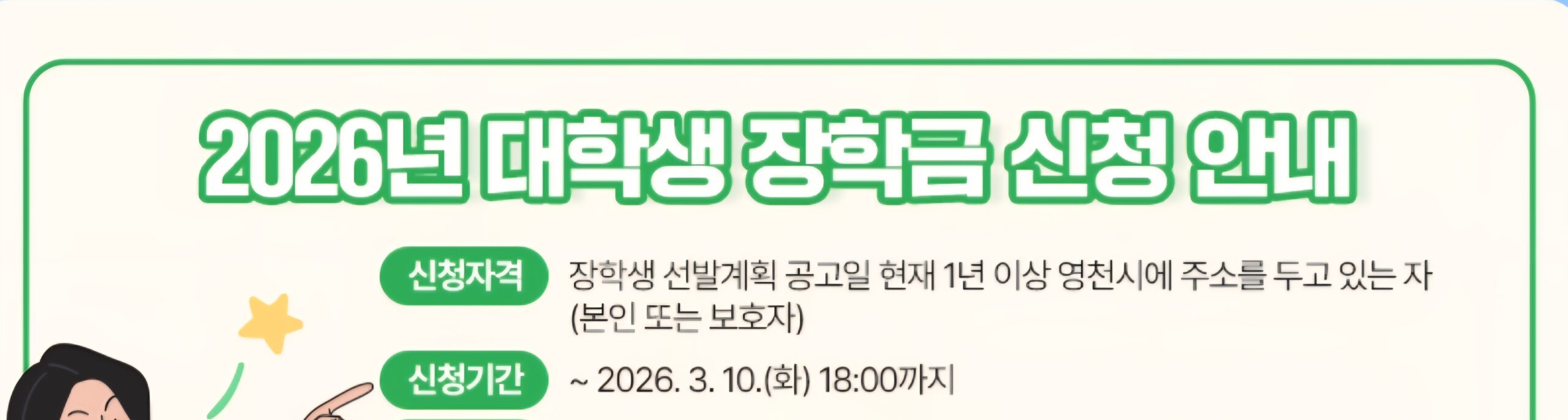 * Those (the student or their guardian) who have had a registered address in Yeongcheon City for at least one year as of the announcement date of the scholarship selection plan.
