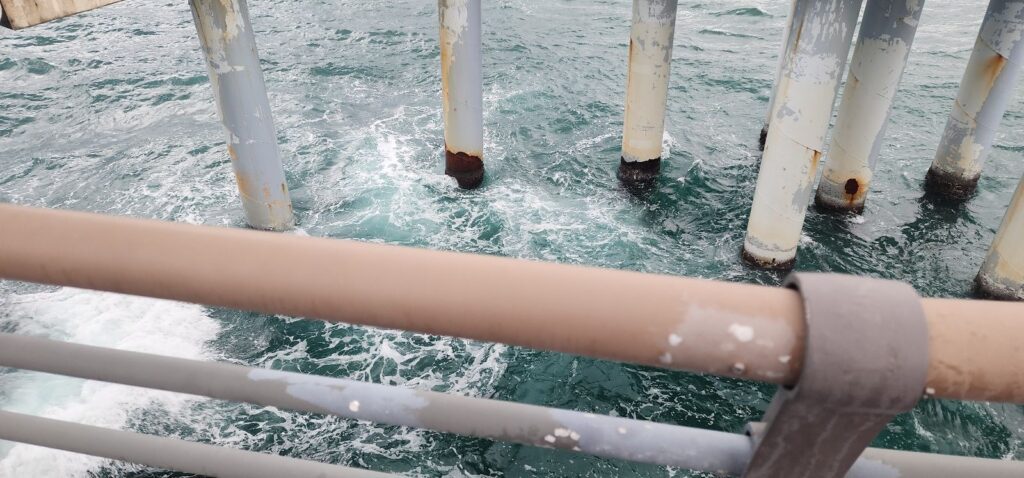 visitor should walk for 10mins toword to ocean and there is place to go down elevator or stairs like screw shape.
