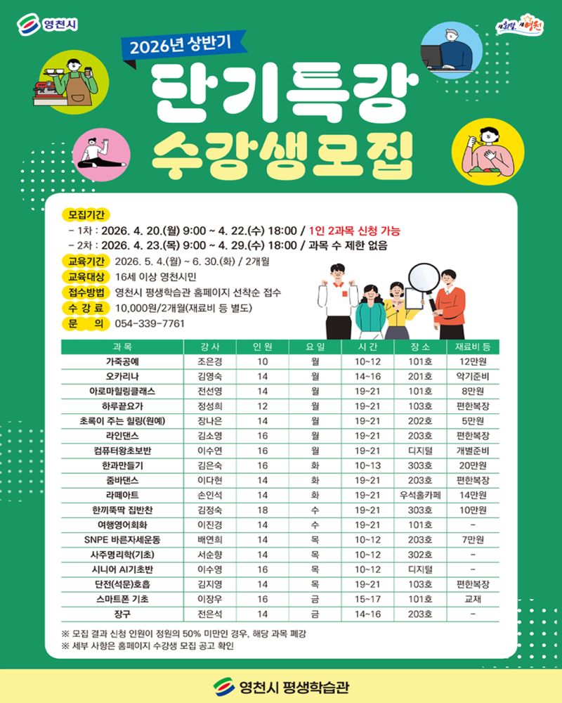 How to Apply: First-come, first-served via the Yeongcheon City Lifelong Learning Institute website. 💻