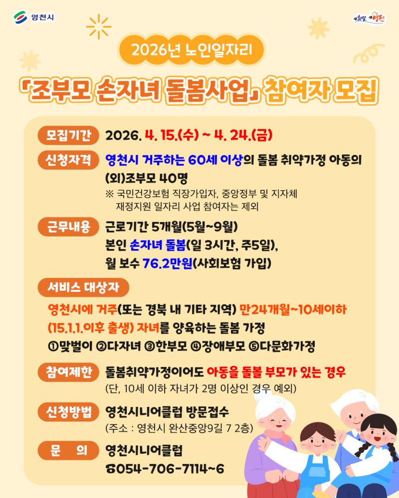 - Method: Visit in person to the Yeongcheon Senior Club.