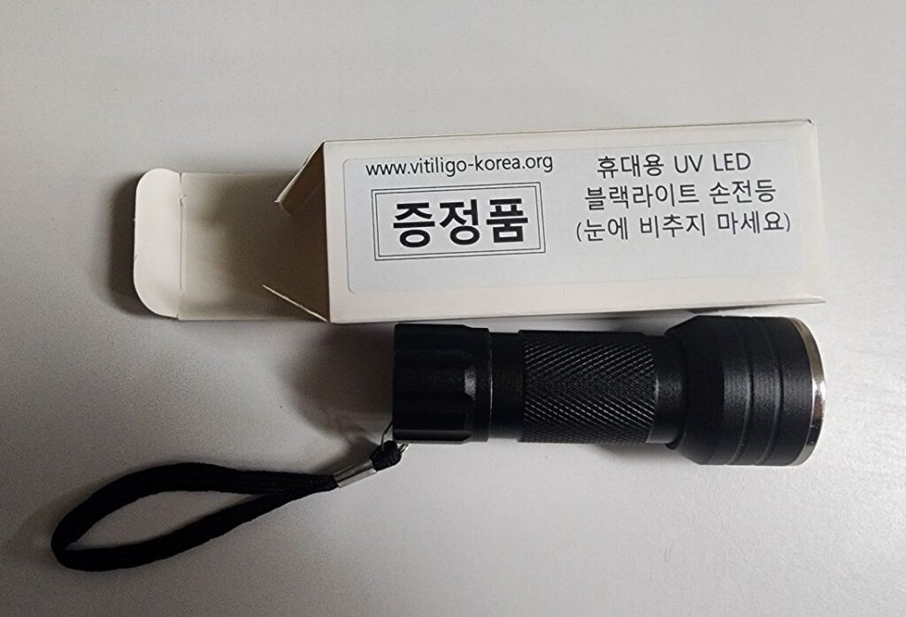 A positive aspect of joining the class is receiving attendance gifts. These gifts include a convenient UV light for home vitiligo detection and sun cream for patients. I have always desired to have a diagnostic light at home.