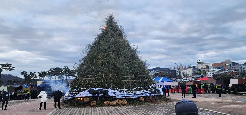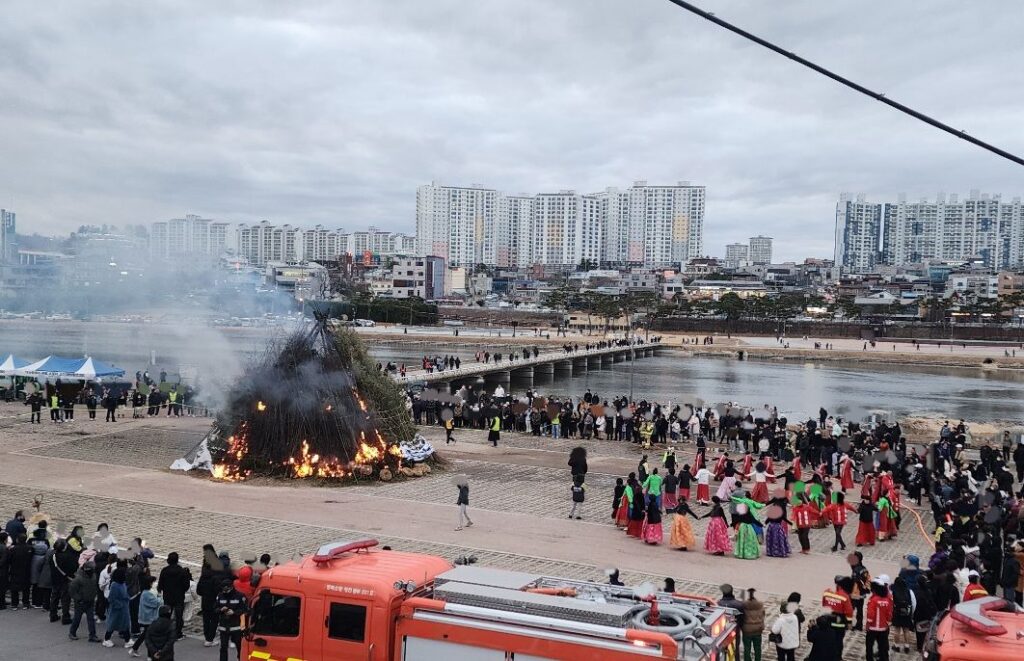 Watching the flames, I felt grateful for the past year and silently prayed for good things to come in 2026. also, politician with different parties and with some of people in the festival and make GangGangSuwolrae that is holding hands next to eacsh other and make circle and moving one direction altogether. it was good to watch all of different background of people are holding hands and looks make harmony of that.
